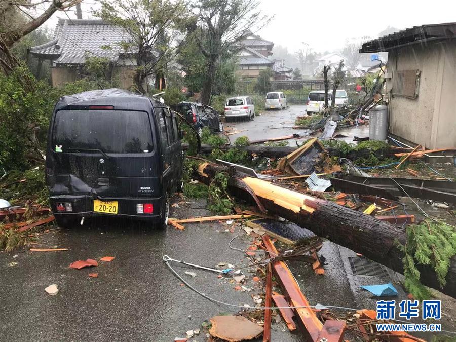 10月12日,在日本千叶县市原市,建筑物和车辆遭龙卷风袭击后被损毁。新华社记者 邓敏 摄