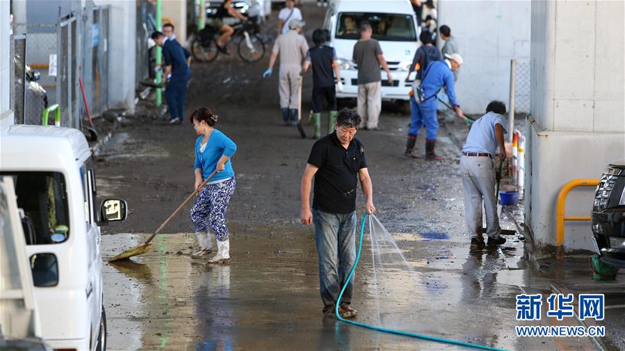 10月13日,在日本东京,居民清理洪水带来的淤泥。 受“海贝思”影响,日本中东部多地12日起普降大暴雨。除千曲川外,日本东京都、埼玉县、福岛县等地另有13条河流也发生不同程度漫堤、溃堤,导致一些民宅、农田被淹。据日本媒体统计,截至目前,“海贝思”已至少导致10人遇难、16人失踪、128人受伤。 新华社记者马曹冉摄