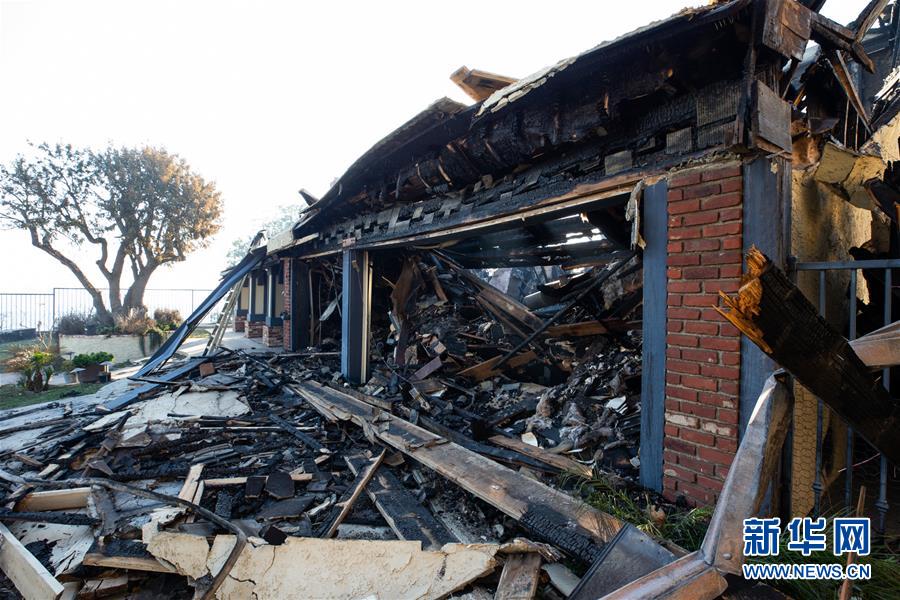 当日,消防人员持续应对加州山火。洛杉矶消防局12日称,10日晚爆发的山火过火面积已达7552英亩(约合30.6平方公里),19%的火势得到控制。 新华社发(钱卫忠摄)
