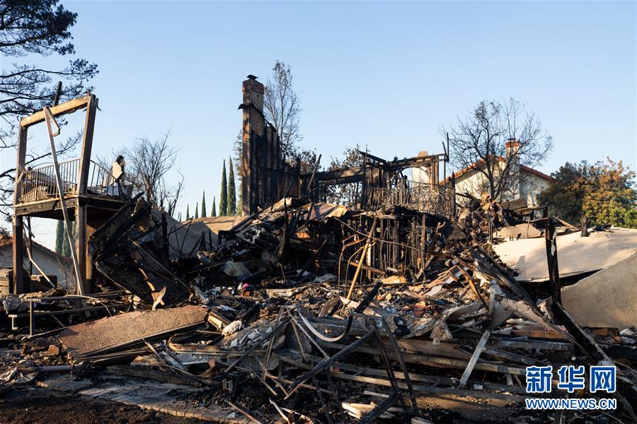 这是10月12日在美国加利福尼亚州波特兰奇拍摄的被烧毁的房屋。