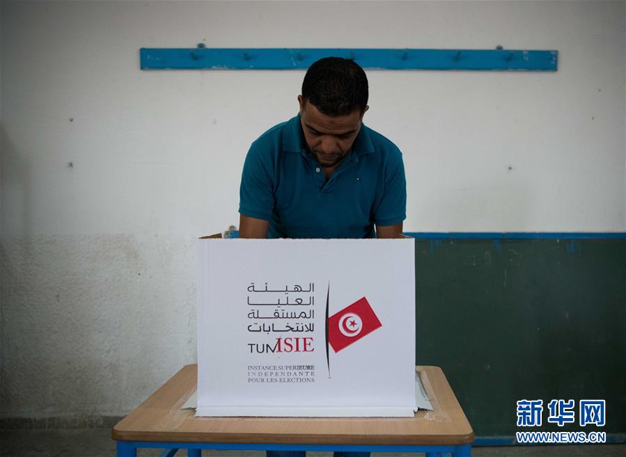 10月13日,一名选民在突尼斯首都突尼斯城的一个投票站内填写选票。 当日,突尼斯举行第二轮总统选举投票。 新华社记者 邬惠我 摄