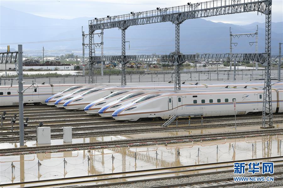 10月14日,在日本长野市,东日本铁路公司长野新干线车辆中心的新干线列车被洪水浸泡。 受纵贯东日本强台风“海贝思”带来的强降雨影响,日本多地暴发洪灾,已造成33人死亡、19人失踪。据日本共同社13日统计,“海贝思”过境导致日本多处河流泛滥,目前有21条河流决堤24处。其中,流经长野县的千曲川决堤,造成长野市和千曲市大范围被淹,大片住宅区被洪水包围,有的房屋甚至被淹至2层。 新华社记者 华义 摄