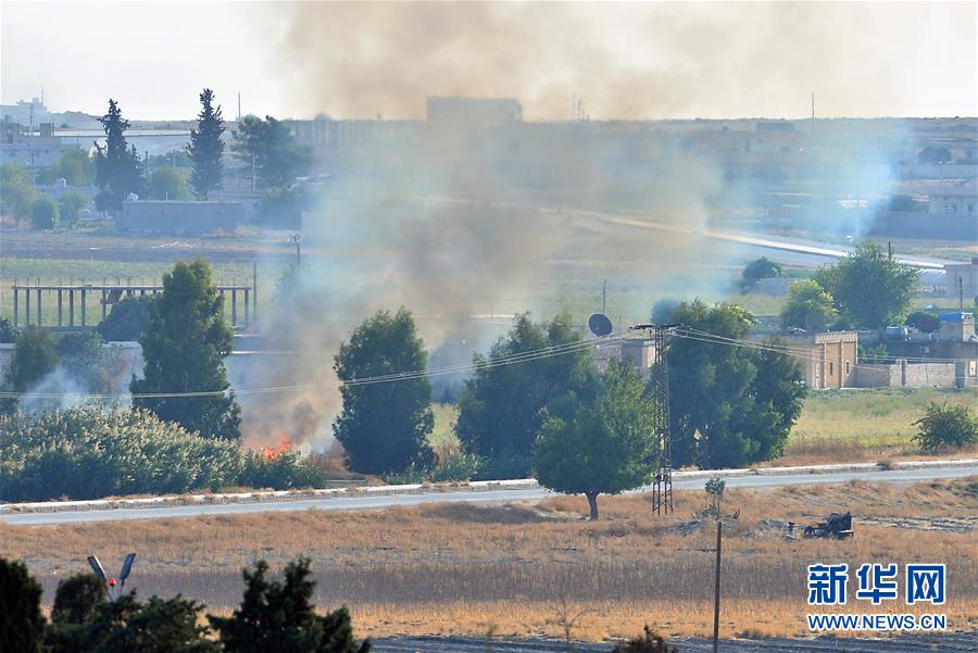 这是10月13日在土耳其阿克恰卡莱拍摄的受炮火攻击的叙利亚北部边境城镇泰勒艾卜耶德。土耳其国防部长阿卡尔14日对媒体表示,土耳其武装部队已控制叙利亚北部边境城镇泰勒艾卜耶德和拉斯艾因。他说,土军针对叙北部的行动将持续。 新华社发(穆斯塔法·卡亚 摄)