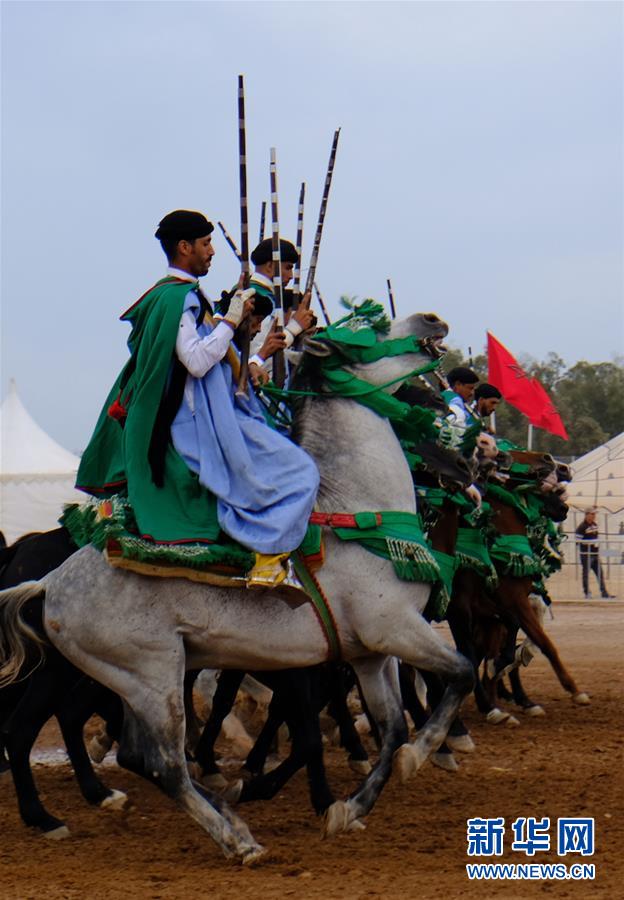 10月20日,在摩洛哥杰迪代举行的马术节上,人们身穿传统服饰参加传统骑术比赛。 新华社记者 陈斌杰 摄
