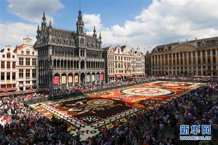 这是2018年8月17日在比利时布鲁塞尔大广场拍摄的鲜花地毯。 新华社记者 郑焕松 摄