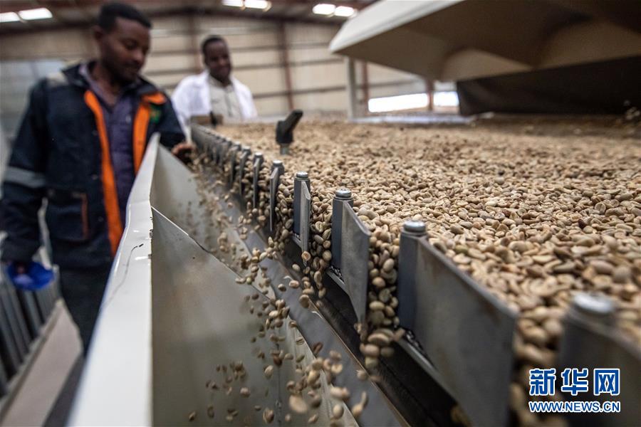 10月24日,在位于埃塞俄比亚首都亚的斯亚贝巴郊外的卡辰什(音译)咖啡加工厂内,机器筛选出的优质咖啡豆进入下一道工序。 第二届中国国际进口博览会开幕前夕,新华社记者来到位于埃塞俄比亚首都亚的斯亚贝巴郊外的卡辰什(音译)咖啡加工厂,探访这里的咖啡加工过程。卡辰什咖啡是埃塞俄比亚最大的咖啡生产商和出口商之一。卡辰什咖啡质量和市场总监阿斯纳克·卡萨表示,中国市场潜力巨大,埃塞俄比亚咖啡在中国市场的占有率不断增长,进博会对埃塞俄比亚咖啡出口商来说是一个很好的机会。 新华社记者 张宇 摄