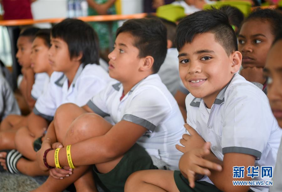 10月26日,在库克群岛首都阿瓦鲁阿的阿皮尼考学校,小学生欣赏中国交响乐团演奏家的表演。 阿皮尼考学校位于库克群岛首都阿瓦鲁阿,2018年5月投入使用。由于学校名字的发音与汉语“你好”相似,这所学校也被当地人亲切地称为“你好”学校。阿皮尼考是库克群岛规模最大、学部最全、现代化程度最高的综合学校,涵盖幼儿园、中小学和职业中学,占地面积约2.5万平方米,建筑面积5000多平方米,目前有440多名学生和30名教职员工。 新华社记者 郭磊 摄