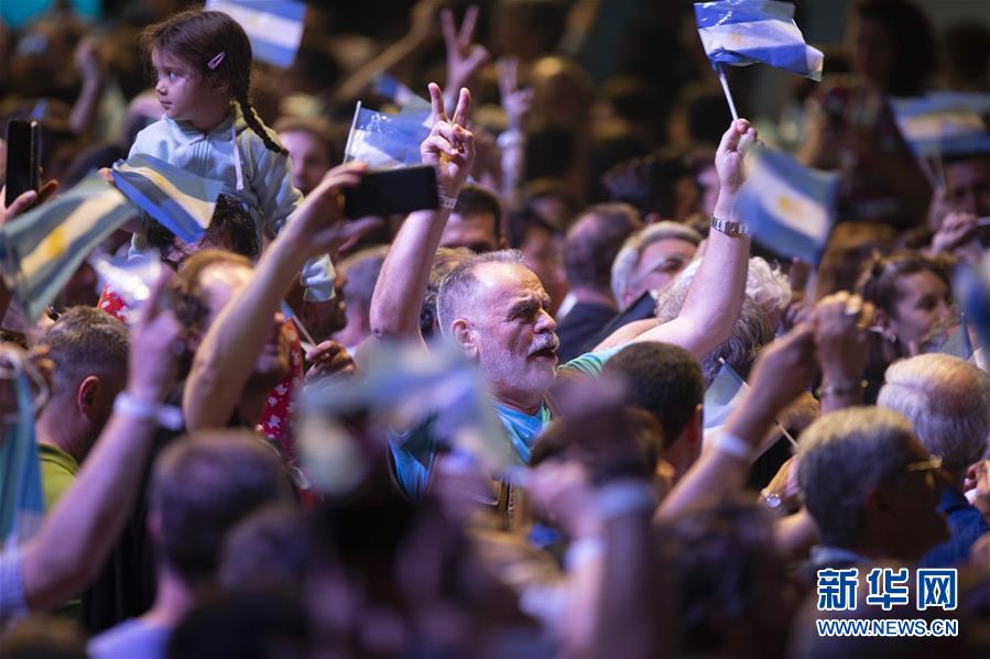 10月27日晚,费尔南德斯的支持者在阿根廷布宜诺斯艾利斯庆祝胜利。 新华社发(马丁·萨巴拉摄)