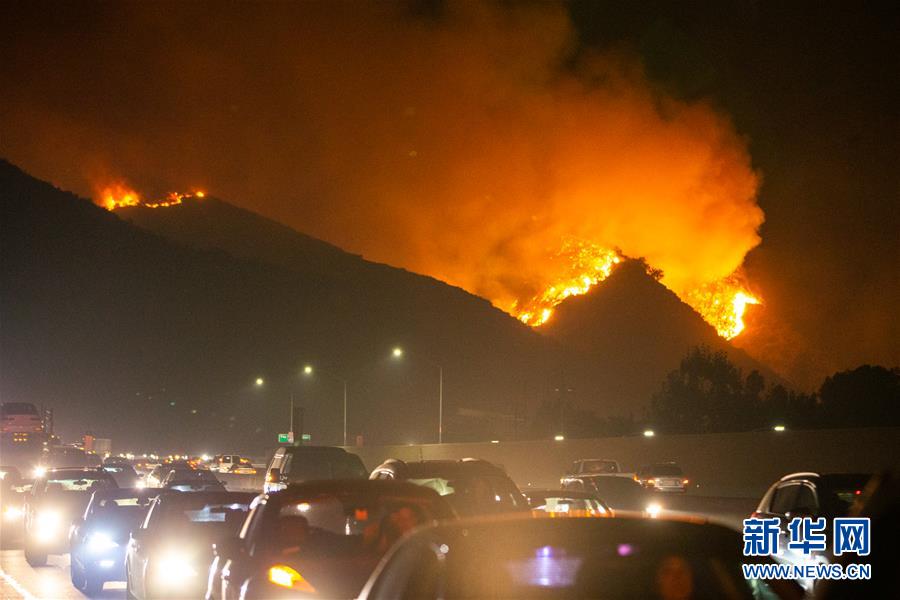 这是10月28日在美国加利福尼亚州洛杉矶拍摄的山火。 近日,美国加利福尼亚州山火肆虐,洛杉矶数千居民被迫从家中撤离。 新华社发(钱卫忠摄)