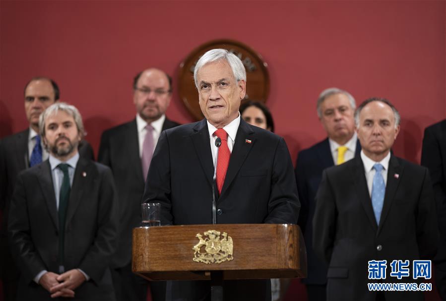 10月28日,在智利圣地亚哥,智利总统皮涅拉(前排中)宣布改组内阁。新华社发(马塞洛·塞古拉摄)