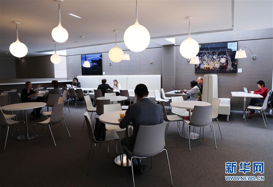 10月24日,在法国巴黎地区克里希市的欧莱雅集团总部,员工在咖啡厅休息。新华社记者 高静 摄