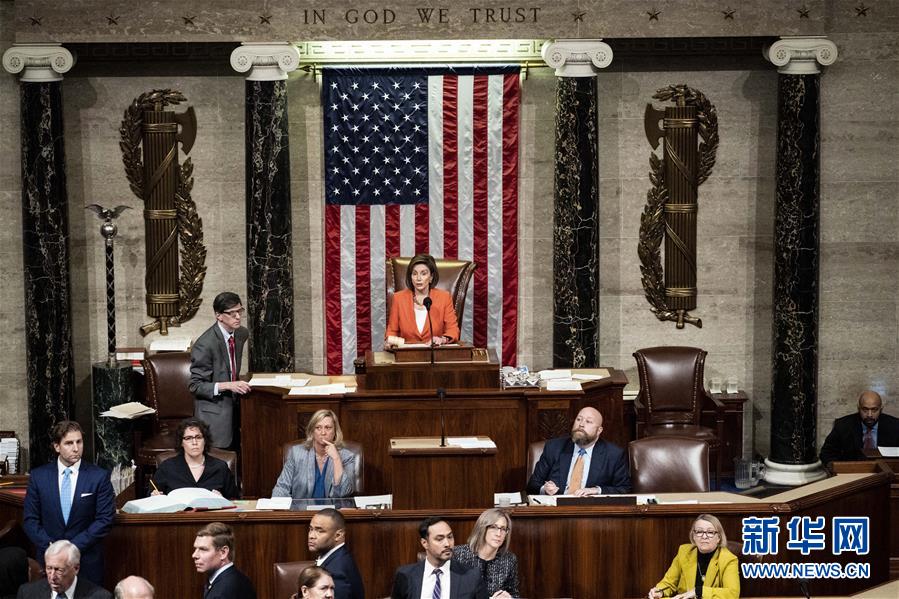 10月31日,在美国华盛顿,美国国会众议长佩洛西(中)主持针对总统特朗普进行弹劾调查程序的决议案投票。 美国国会众议院10月31日以232票赞成、196票反对的表决结果,通过一项针对总统特朗普的弹劾调查程序的决议案。这是众议院首次就这一弹劾调查举行正式投票。 新华社发(梅利娜·玛拉 摄)