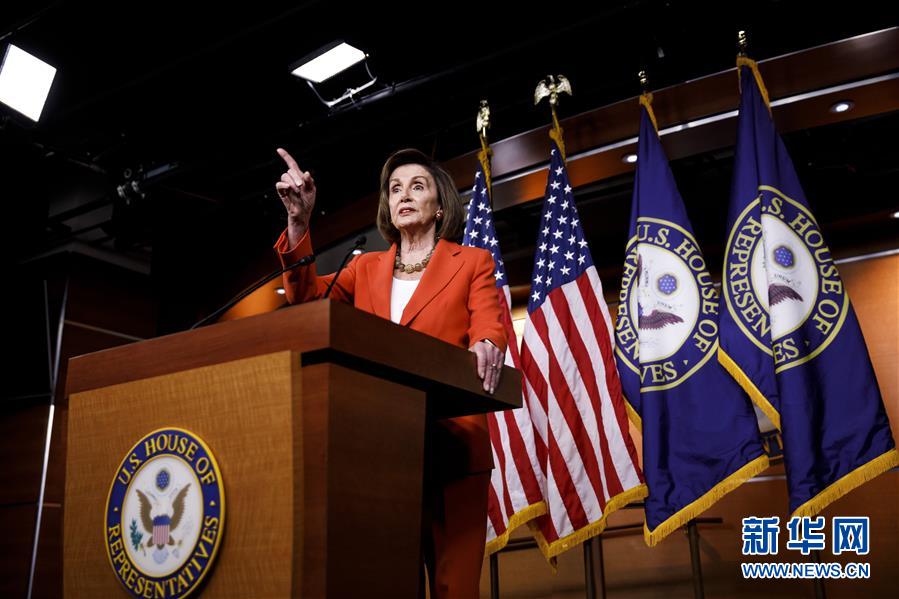 10月31日,在美国华盛顿,美国国会众议长佩洛西在众议院针对总统特朗普进行弹劾调查程序的决议案投票前举行记者会。 美国国会众议院10月31日以232票赞成、196票反对的表决结果,通过一项针对总统特朗普的弹劾调查程序的决议案。这是众议院首次就这一弹劾调查举行正式投票。 新华社发(沈霆 摄)