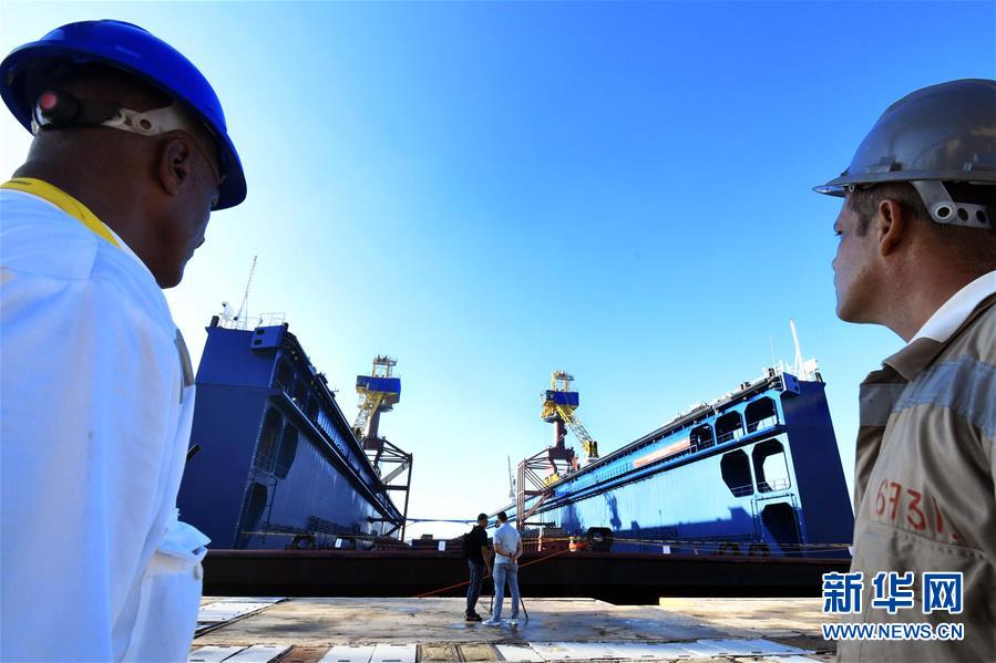 10月30日,在古巴哈瓦那,当地员工参观中国制造的浮船坞。 中国机械进出口(集团)有限公司(中机公司)30日向古巴交通部下属最大修造船厂交付一艘中国制造的2.2万吨举力浮船坞。这是目前古巴乃至加勒比地区最大、最先进的船坞,将有效提升古巴航运业发展水平。 新华社发(华金·埃尔南德斯 摄)