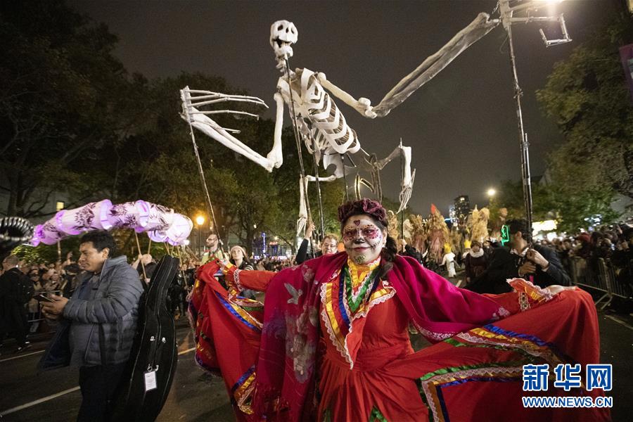 10月31日,人们在美国纽约曼哈顿参加万圣节大游行,庆祝一年一度的西方传统节日万圣节。 新华社记者 王迎 摄