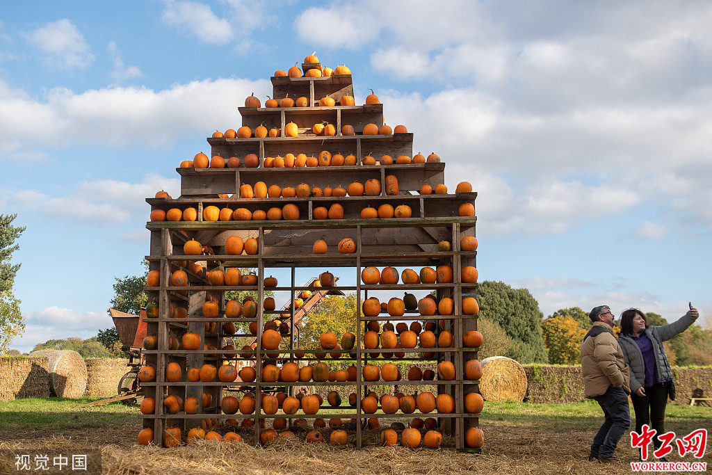 迎万圣节 英国一农场用近千颗南瓜搭建南瓜屋