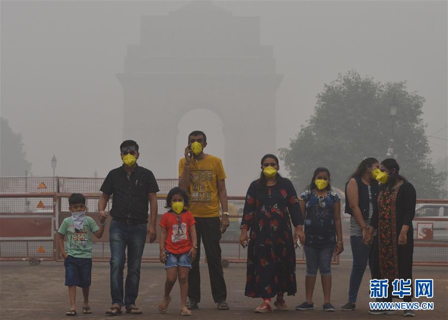 11月3日,在印度新德里,人们戴口罩进行户外活动。 印度首都新德里近日遭遇严重空气污染。 新华社发(帕塔·萨卡尔摄)