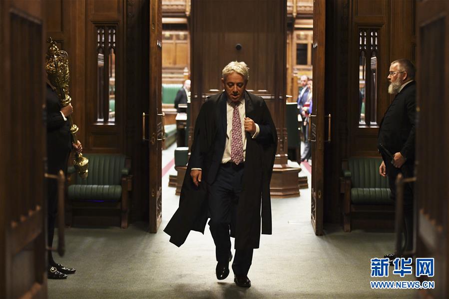 10月31日,在英国伦敦,卸任议长约翰·伯科(中)走出议会下院。 英国议会下院11月4日投票选举林赛·霍伊尔为新议长,接替上周卸任的约翰·伯科。霍伊尔出生于1957年,1997年当选英国议会下院工党议员,2010年以来一直担任议会下院副议长。 新华社发(英国议会摄影师杰西卡·泰勒摄)
