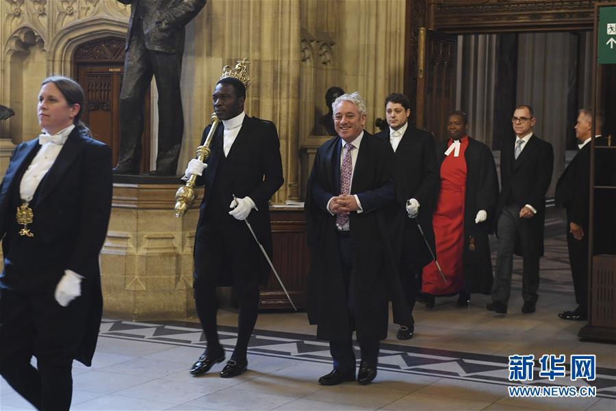 10月31日,在英国伦敦,即将卸任的议长约翰·伯科(中)准备进入议会下院。 英国议会下院11月4日投票选举林赛·霍伊尔为新议长,接替上周卸任的约翰·伯科。霍伊尔出生于1957年,1997年当选英国议会下院工党议员,2010年以来一直担任议会下院副议长。 新华社发(英国议会摄影师杰西卡·泰勒摄)