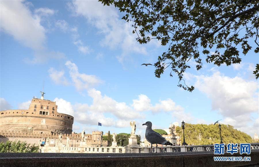 11月4日,在意大利首都罗马,一只海鸥站在台伯河畔。 连日阴雨后,罗马迎来了好天气,人们纷纷来到户外享受秋日的阳光与美景。 新华社记者程婷婷摄