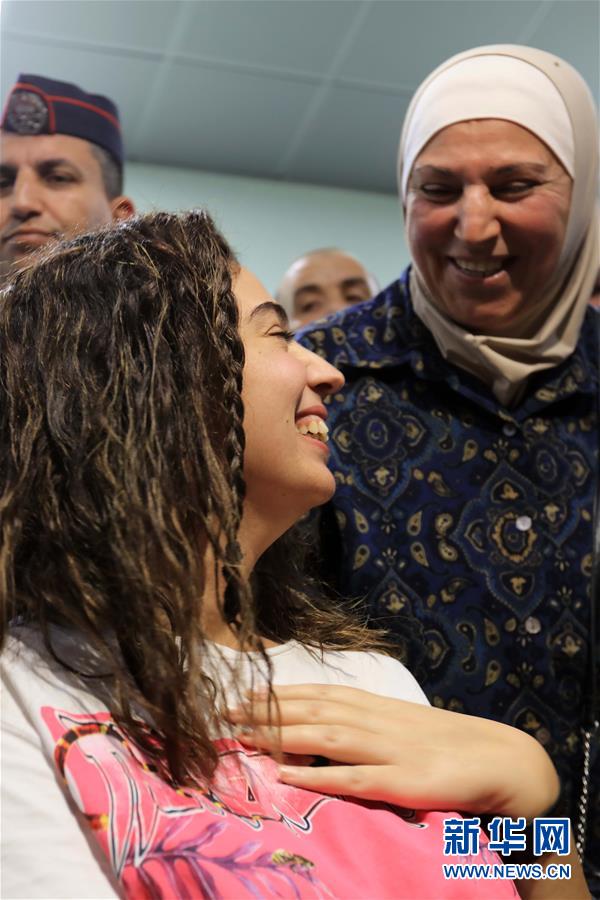 11月6日,被释放的约旦公民希巴·拉卜迪(前左)在抵达约旦边境后与母亲交谈。新华社发(穆罕默德·阿布·古什摄)