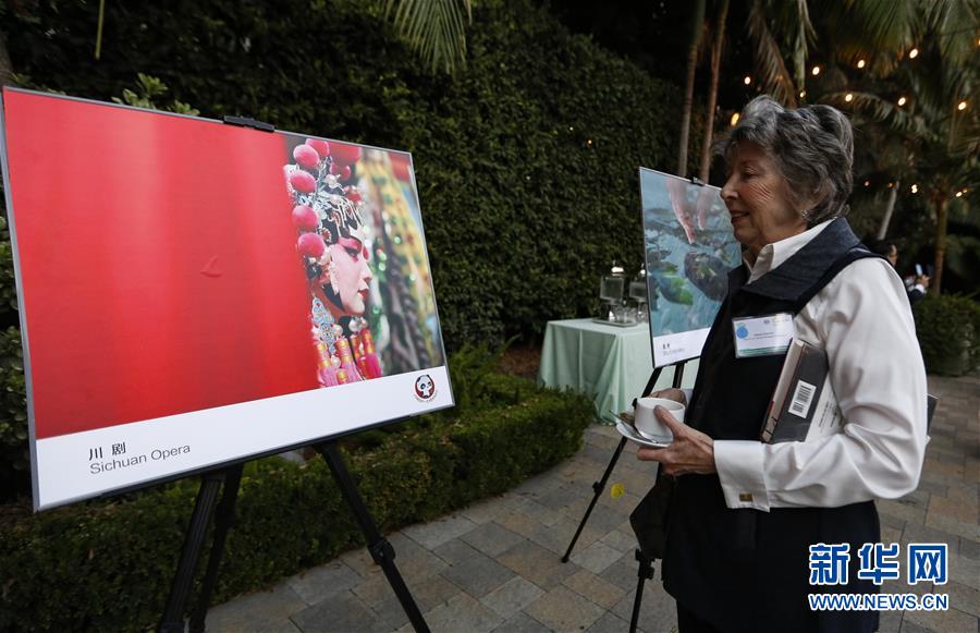 11月6日,在美国洛杉矶,一名嘉宾在活动上参观图片展。 新华社记者李颖摄