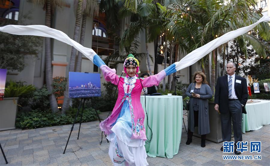11月6日,在美国洛杉矶,来自成都的演员在活动现场表演。新华社记者李颖摄