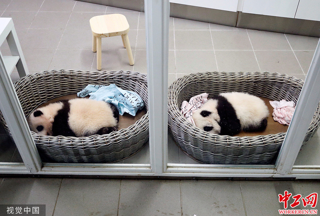 比利时新生双胞胎大熊猫宝宝亮相 憨态可掬惹人喜爱