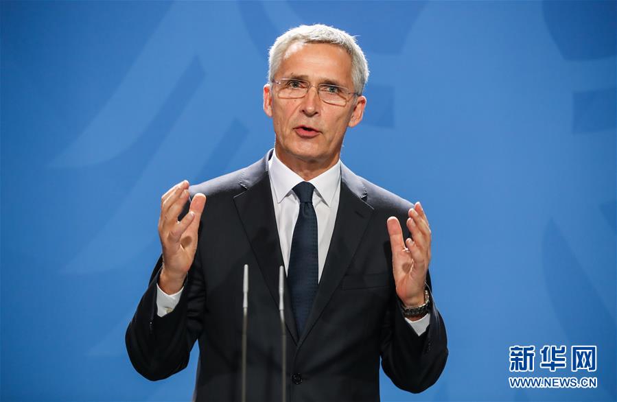 11月7日,在德国首都柏林的总理府,北约秘书长斯托尔滕贝格出席新闻发布会。新华社记者 单宇琦 摄