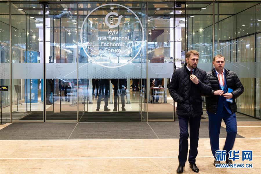 这是11月8日在乌克兰基辅拍摄的基辅国际经济论坛入口。 第六届基辅国际经济论坛8日在乌克兰首都基辅开幕。乌克兰总统泽连斯基在讲话中呼吁国际社会加大对乌投资。 新华社记者 白雪骐 摄
