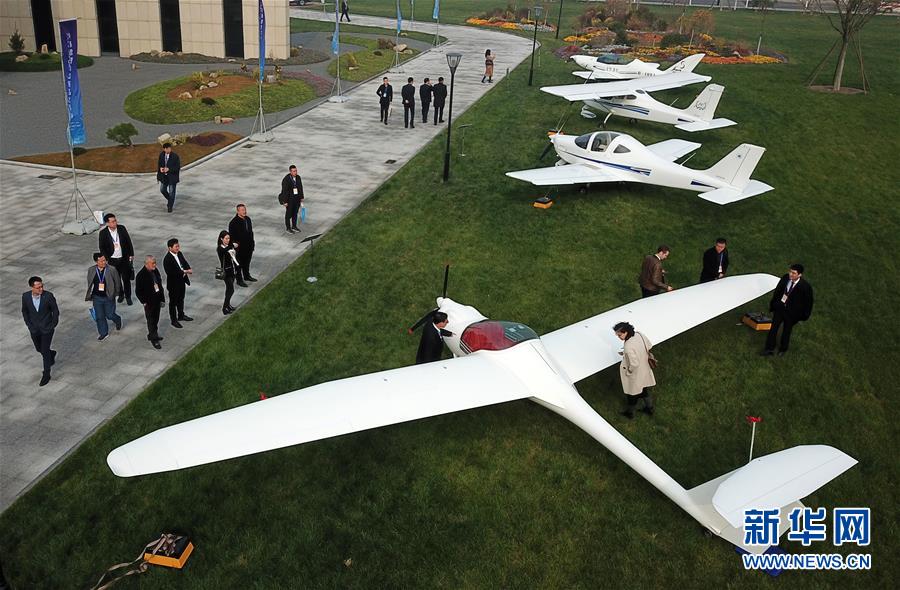 11月9日,人们参观中国与捷克联合研发的“天空保卫者”无人机(下)。 当日,中东欧进出口商品交易会在河北沧州举行,共有来自20余个国家和地区的300余种产品参展。 新华社记者 金良快 摄