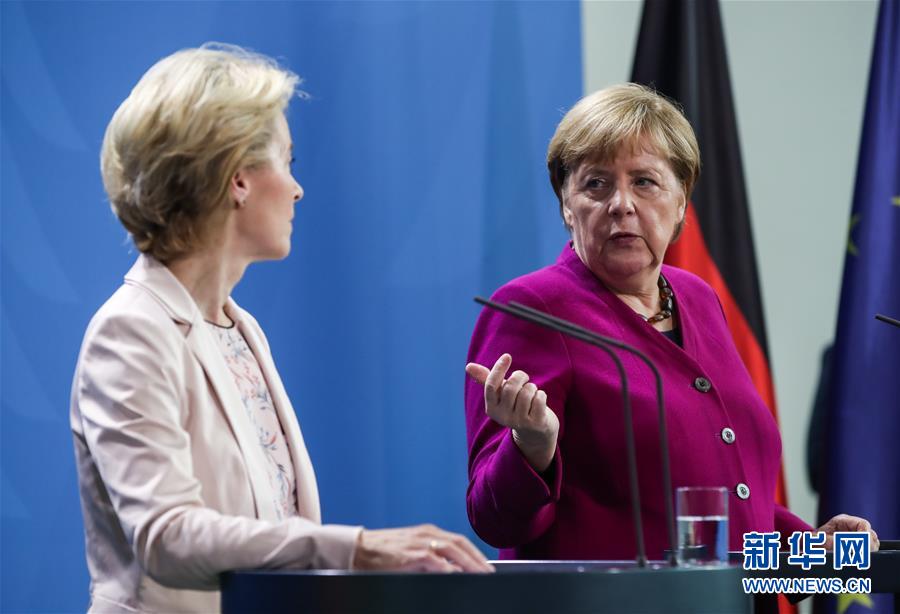 11月8日,在德国首都柏林的总理府,德国总理默克尔(右)和来访的欧盟委员会当选主席冯德莱恩出席联合记者会。 德国总理默克尔8日与来访的欧盟委员会当选主席冯德莱恩出席联合记者会时表示,德国非常看重对参与5G网络建设的企业提出的安全要求及其可验证性,但不会为某个特定的供应商单独设定标准。 新华社记者单宇琦摄