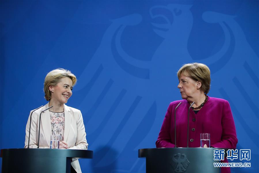 11月8日,在德国首都柏林的总理府,德国总理默克尔(右)和来访的欧盟委员会当选主席冯德莱恩出席联合记者会。 德国总理默克尔8日与来访的欧盟委员会当选主席冯德莱恩出席联合记者会时表示,德国非常看重对参与5G网络建设的企业提出的安全要求及其可验证性,但不会为某个特定的供应商单独设定标准。 新华社记者单宇琦摄