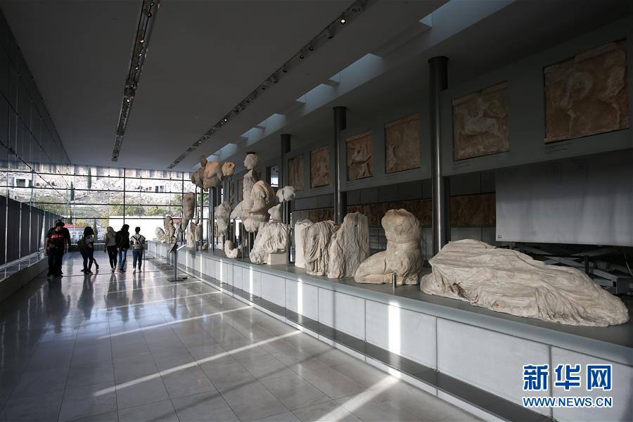 这是11月7日在希腊雅典卫城博物馆拍摄的帕特农神庙雕塑及浮雕展示区。 雅典卫城博物馆的前身于1886年建于卫城山丘,距卫城300米的新馆在2009年正式开放,馆内保存着女像柱、帕特农神庙雕塑等名作。 新华社发(马里奥斯·罗洛斯 摄)