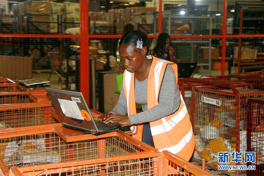 9月13日,在非洲电子商务公司Jumia位于尼日利亚拉各斯的多功能仓库,一名工作人员在操作电脑。新华社记者 郭骏 摄