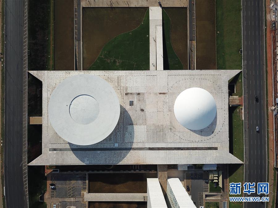 这是11月10日无人机拍摄的位于巴西首都巴西利亚的国会。 新华社记者 辛悦卫 摄