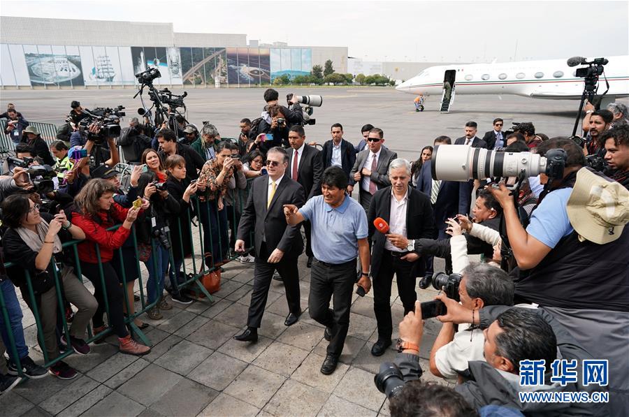 11月12日,在墨西哥首都墨西哥城,莫拉莱斯(中)抵达墨西哥城国际机场。 日前辞职的玻利维亚总统莫拉莱斯12日抵达墨西哥首都墨西哥城,接受墨方提供的政治庇护。 新华社发(戴维·德拉帕斯 摄)