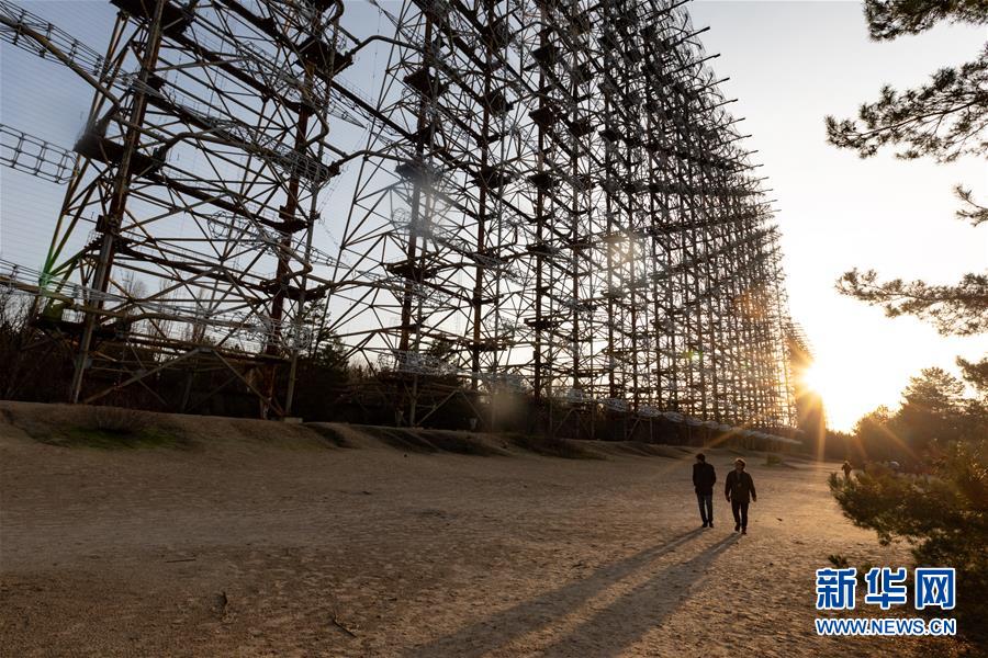 11月12日,在乌克兰北部的切尔诺贝利核电站隔离区,游客在一处废弃的雷达站参观。新华社记者 白雪骐 摄