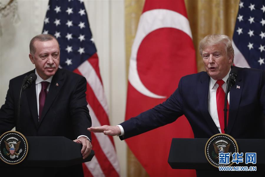 11月13日,在美国华盛顿白宫,美国总统特朗普(右)与土耳其总统埃尔多安出席联合记者会。新华社发(沈霆摄)