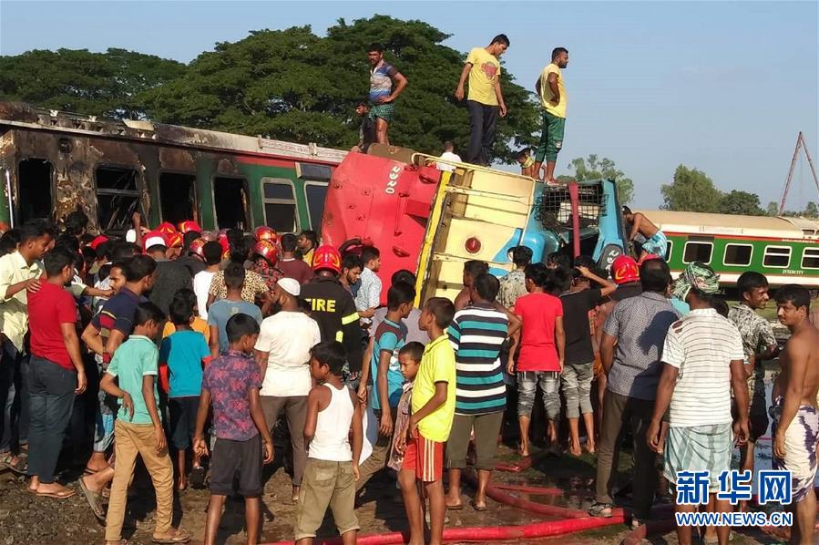 11月14日,在孟加拉国锡拉杰甘杰,人们聚集在火车脱轨事故现场。 新华社发