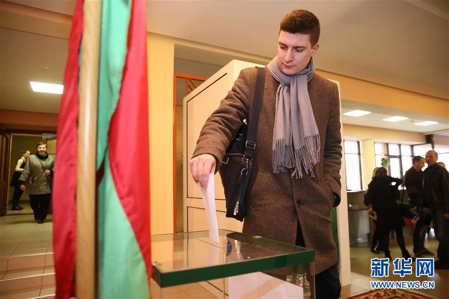 11月17日,在白俄罗斯西部城市格罗德诺,一名男子在一处投票站参加国民会议代表院(议会下院)选举投票。 当地时间17日上午8时,白俄罗斯境内数千个投票站同时开放,选举新一届国民会议代表院(议会下院)议员。 新华社/白通社