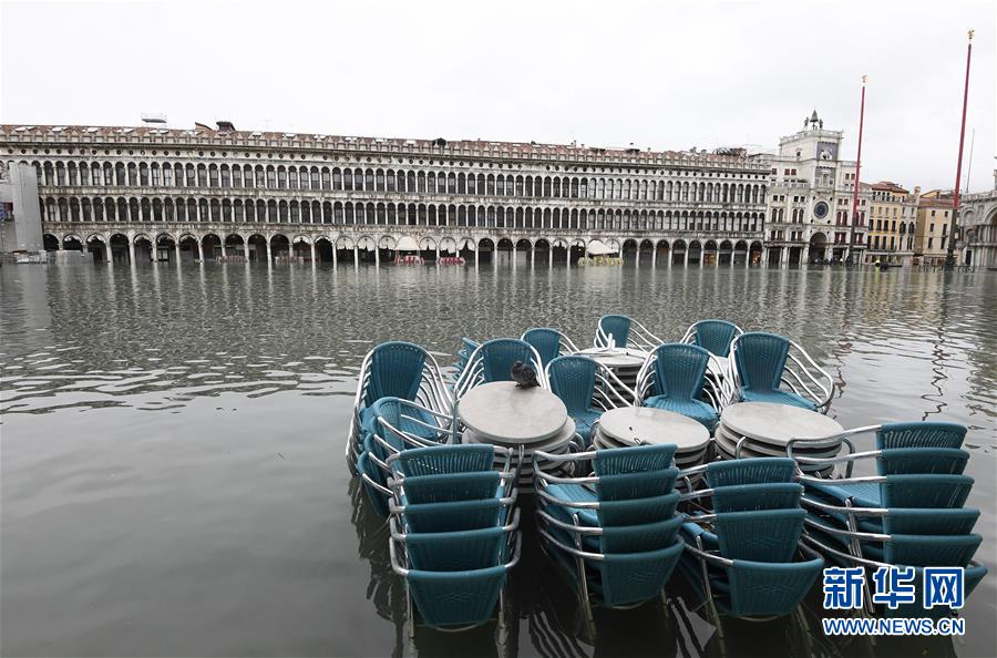 这是11月17日在意大利威尼斯拍摄的受洪水侵袭的圣马可广场。 受极端天气影响,威尼斯近日遭遇严重洪灾。 新华社发(埃莉萨·林格里亚摄)