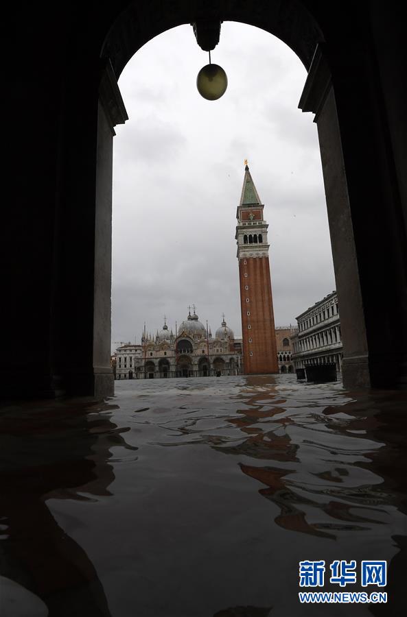 这是11月17日在意大利威尼斯拍摄的受洪水侵袭的圣马可大教堂。 受极端天气影响,威尼斯近日遭遇严重洪灾。 新华社发(埃莉萨·林格里亚摄)