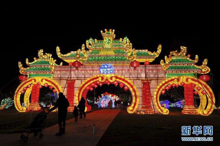 11月20日,在美国纽约斯塔滕岛,人们在第二届纽约花灯游园会上赏灯。 当日,第二届纽约花灯游园会在美国纽约斯塔滕岛开幕,50余组各类花灯照亮夜空,吸引观众前来赏灯游玩。 新华社记者李木子摄