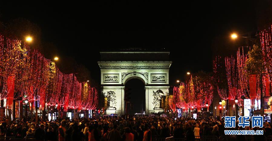 11月24日,在法国巴黎,人们在香榭丽舍大街上参加点灯仪式。 当日,法国巴黎香榭丽舍大街点亮彩灯迎圣诞。从即日起至1月8日,整条香榭丽舍大街都将被喜庆的节日灯饰点亮。 新华社记者高静摄