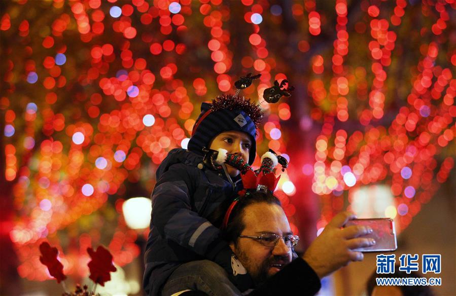 11月24日,在法国巴黎,人们在香榭丽舍大街上参加点灯仪式。 当日,法国巴黎香榭丽舍大街点亮彩灯迎圣诞。从即日起至1月8日,整条香榭丽舍大街都将被喜庆的节日灯饰点亮。 新华社记者高静摄