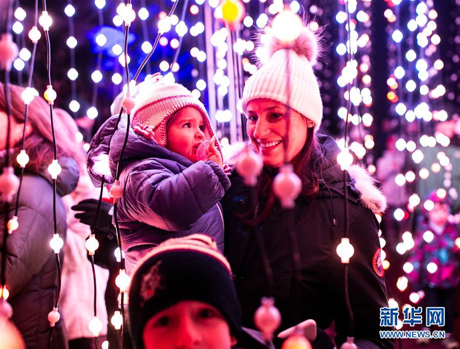 11月24日,游客在美国芝加哥植物园欣赏灯光秀。 美国芝加哥植物园近日举办节日灯光秀,庆祝年末假日季的到来。 新华社发(乔尔·莱纳 摄)