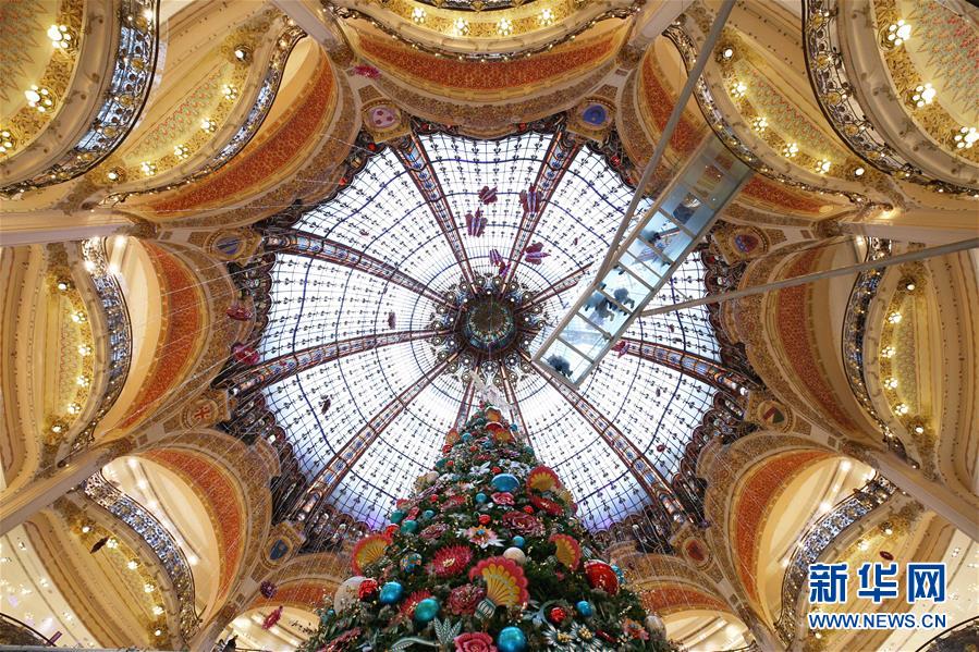 这是11月14日在法国巴黎老佛爷百货公司拍摄的巨型圣诞树。 近日,法国巴黎老佛爷百货公司立起巨型圣诞树,璀璨的灯光和精美的造型设计吸引了众多市民和游客前来参观。人们还可以在商场三楼处踏上高16米、长8米的玻璃走廊,与圣诞树“亲密接触”。 新华社记者高静摄