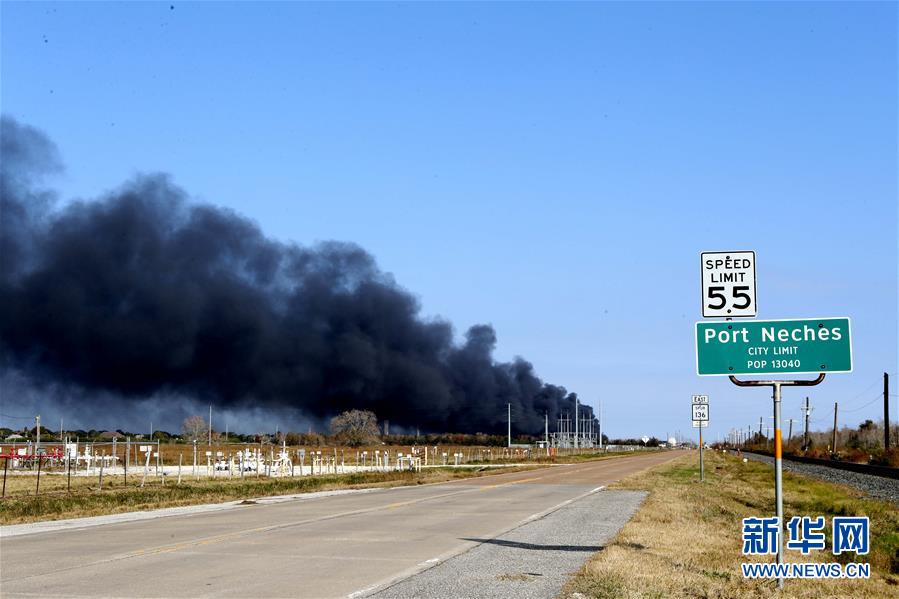 11月27日,在美国得克萨斯州杰斐逊县内奇斯港,发生爆炸的化工厂浓烟滚滚。 美国得克萨斯州杰斐逊县内奇斯港一座化工厂27日凌晨发生爆炸,目前造成3人受伤。 新华社发(宋穹 摄)