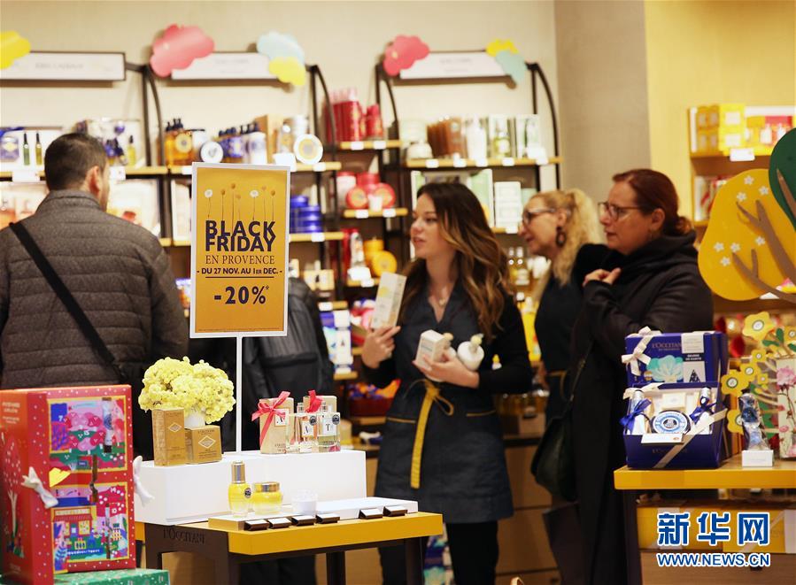 11月27日,在法国巴黎,人们在商店内购物。 巴黎将于11月29日迎来“黑色星期五”购物促销日。 新华社记者高静摄
